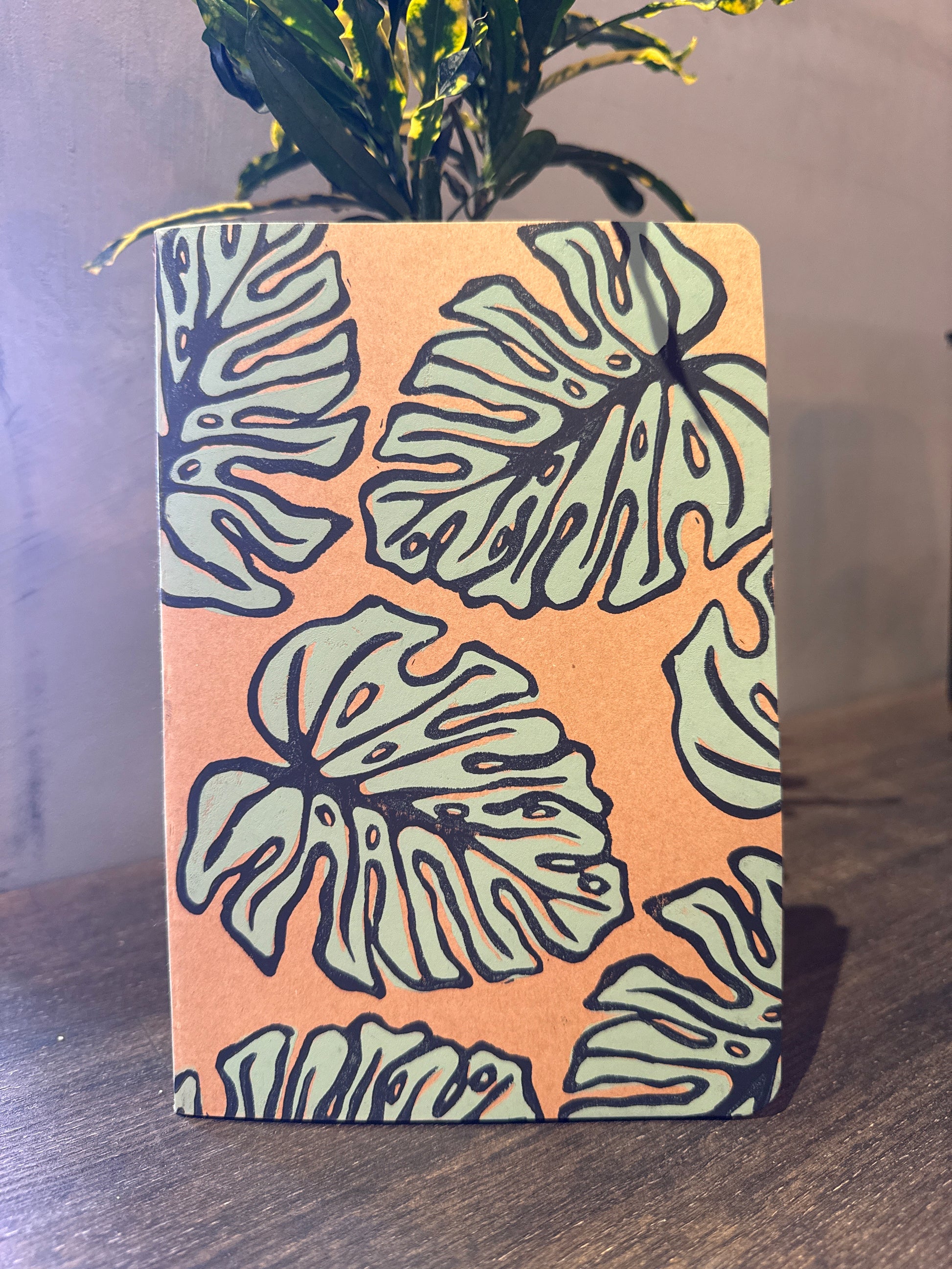 Handmade custom linocut cover design. Printed with green & black ink.